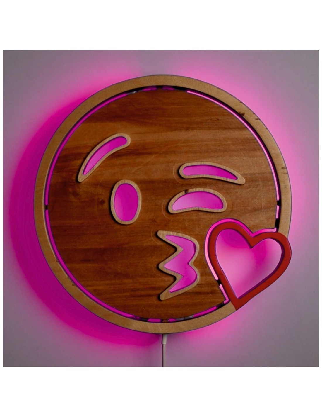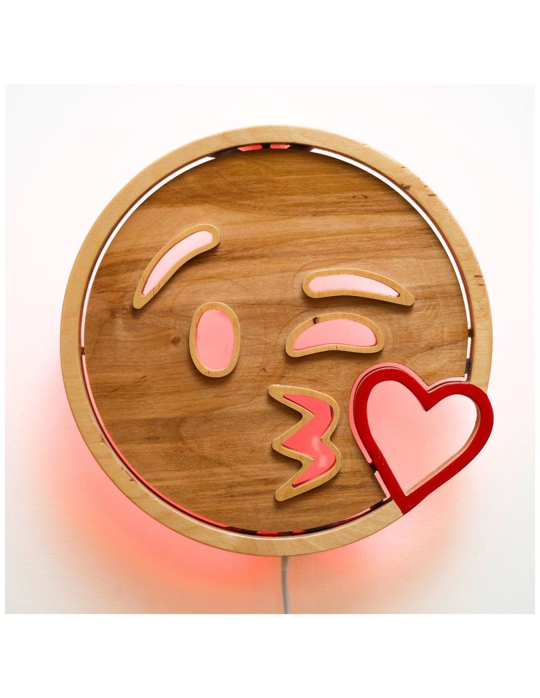 Applique Emoji Kiss LED RGB Smart Artigianale in Legno
